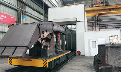 1、由行車將液壓支架放置到牽引板車上,板車上有預定位塊,防止液壓支架放置不準確,導致清洗時干涉;