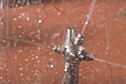德高潔高壓水發(fā)酵罐自動清洗系統(tǒng)是利用高壓水射流的動能將發(fā)酵罐內(nèi)壁表面上的堅硬垢物擊碎,從而剝離并清除掉。具體清洗流程是將特制的三維洗罐器伸縮機構安裝在發(fā)酵罐入口上,伸縮桿伸進罐內(nèi),伸縮桿在罐內(nèi)伸縮和沿內(nèi)壁周圍方向移動。當三維洗罐器水平旋轉時,水射流形成的旋轉力矩帶動噴嘴在垂直面內(nèi)旋轉。由于三維旋轉噴頭與伸縮桿的復合運動,高壓水射流可以覆蓋發(fā)酵罐內(nèi)任何位置,從而完成清洗。